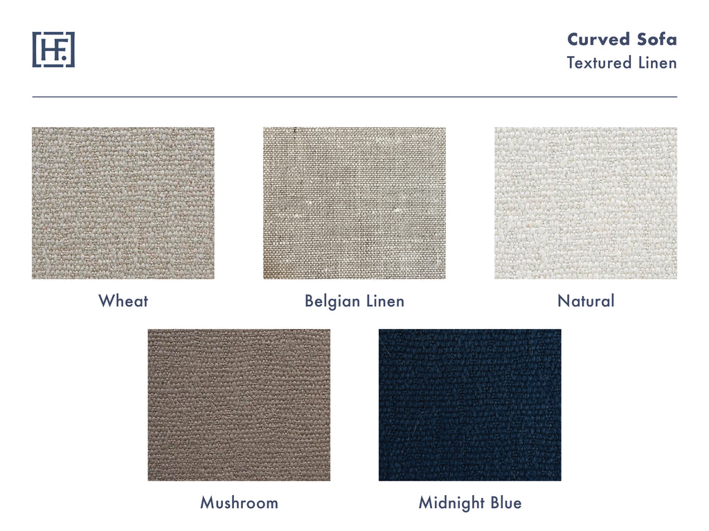 Available in natural materials we offer solid colored sofas in "linen blend" a linen and cotton blend , a thick 100% textured linen or in cotton velvet.