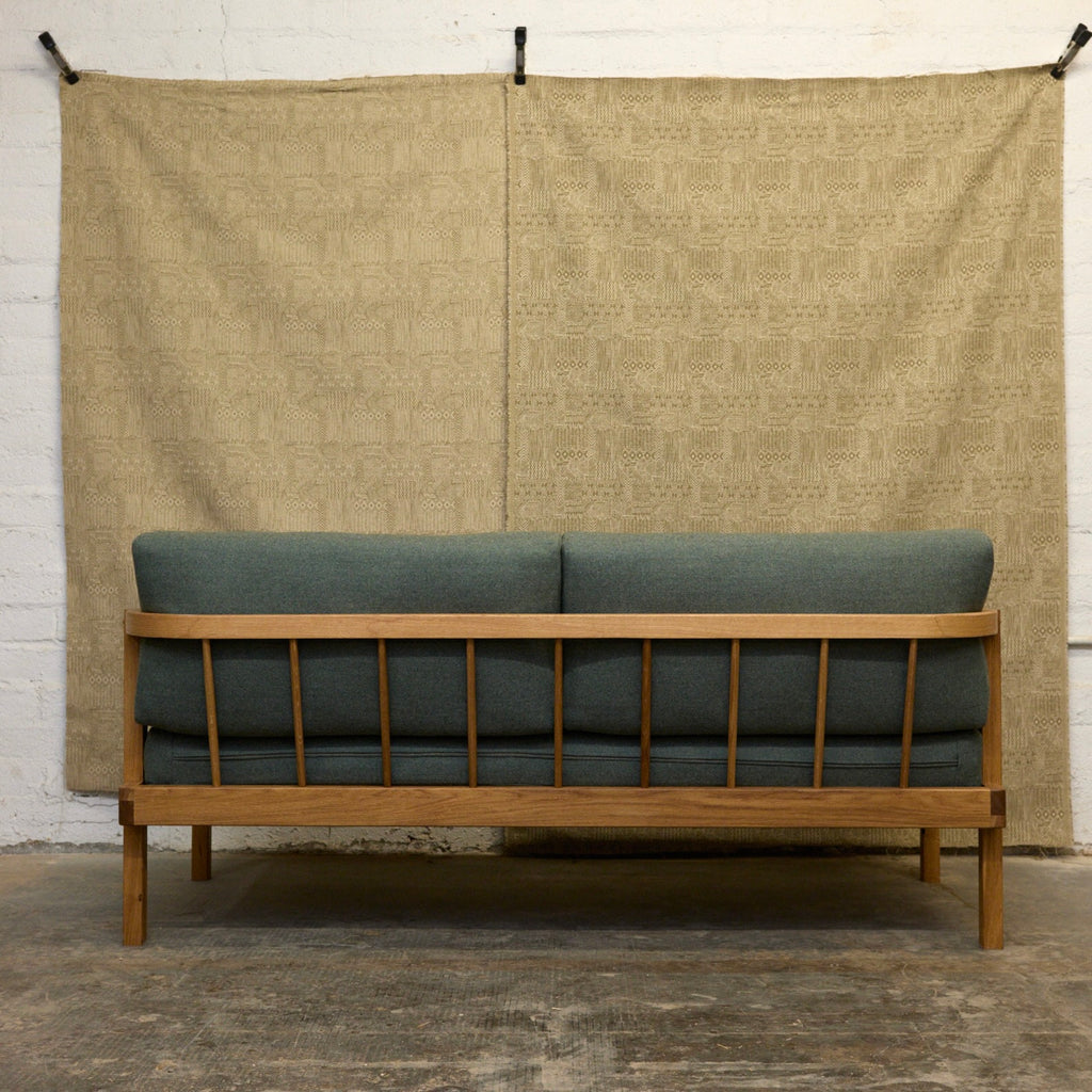 The Hobart Sofa from EBJoinery is inspired by the simplicity of the shaker bench, this spindle back sofa is made with a bentwood frame and paired with loose cushions for a modern look.